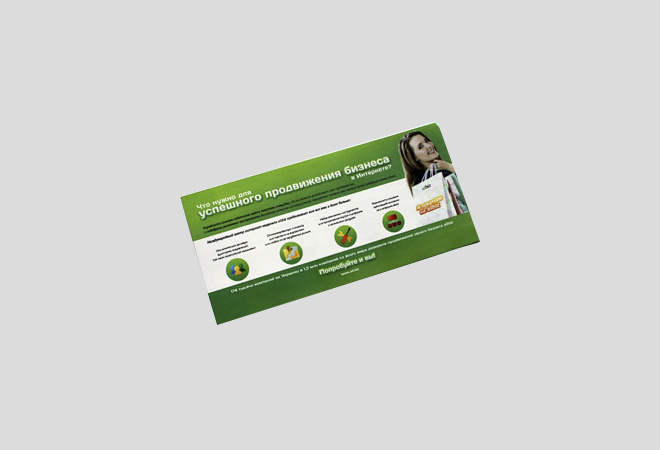 Флаер – это популярная разновидность печатной рекламы. Флаеры раздают в качестве пригласительных или входных билетов на различные мероприятия. Флаер может содержать информацию о товаре, акции на товар, а также предоставлять право на скидку. Отличительная черта флаера – яркий дизайн и минимум информации. Основная цель флаера – в кратчайшие сроки «нагнать на ивент» как можно большее количество людей. Стандартный формат флаера при изготовлении и печати – еврофлаер.
