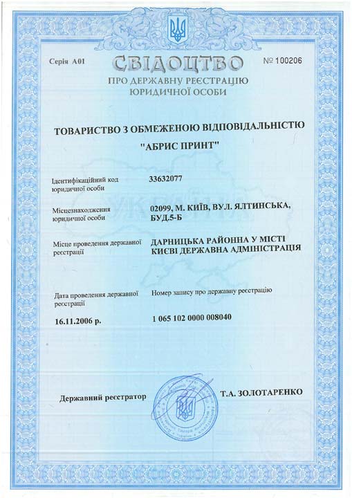 Registered office: 5-B Yaltynska Str., Darnytsia district, Kyiv, 02099